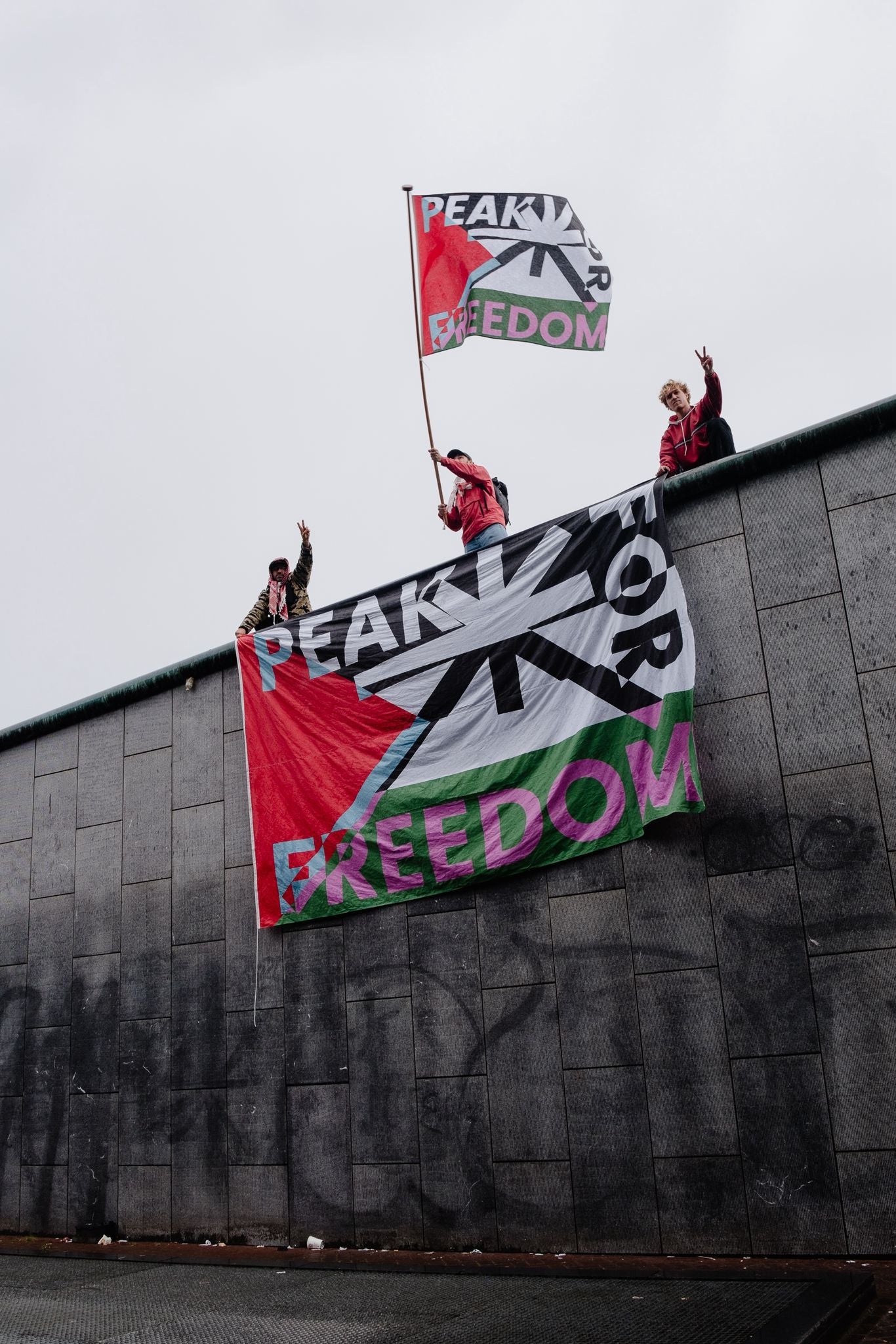 The Peak for Palestine flag is produced by Hemptex, using 100% biodegradable, bio-based materials. Designed to leave no trace behind, the flag stands not only for freedom and solidarity, but also for respect for the land and people it is made by. When the moment passes, the material returns to the earth. The symbol remains.